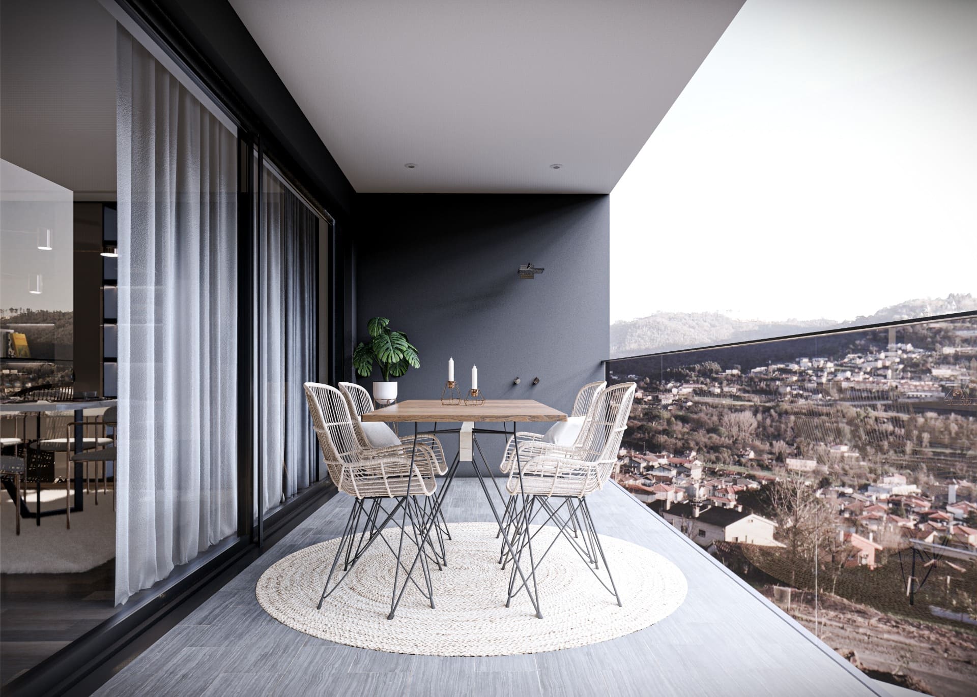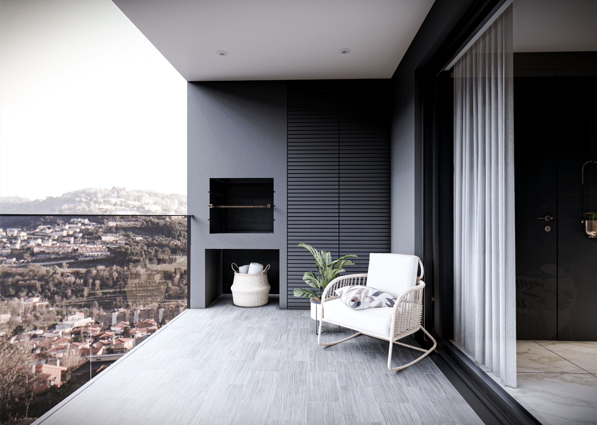 O apartamento dispõem de uma churrasqueira e chuveiro exterior de forma a aproveitar ao máximo os #espaços ao ar livre, #exposição solar e #vistas deslumbrantes sobre a cidada e Bom Jesus. A #impossibilidade de novas construções garante que as vistas nunca serão retiradas.